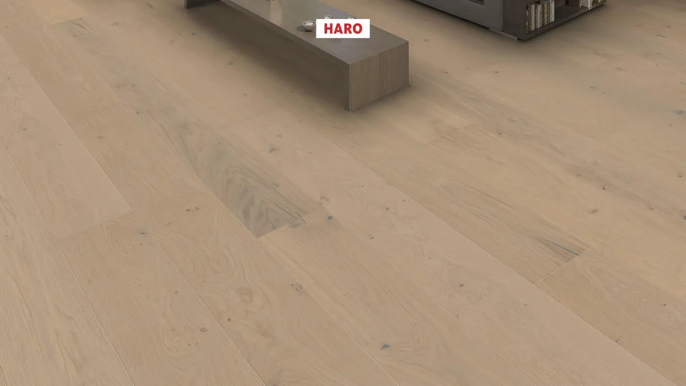 Serie 4000 Landhausdiele Plaza 240 - 541436 Eiche sandgrau Sauvage Strukturiert nL+ Fertig-Parkett